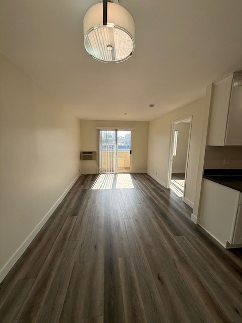 Freshly painted unit with appliances included such as a gas stove, in wall A/C unit/heater and dishwasher.