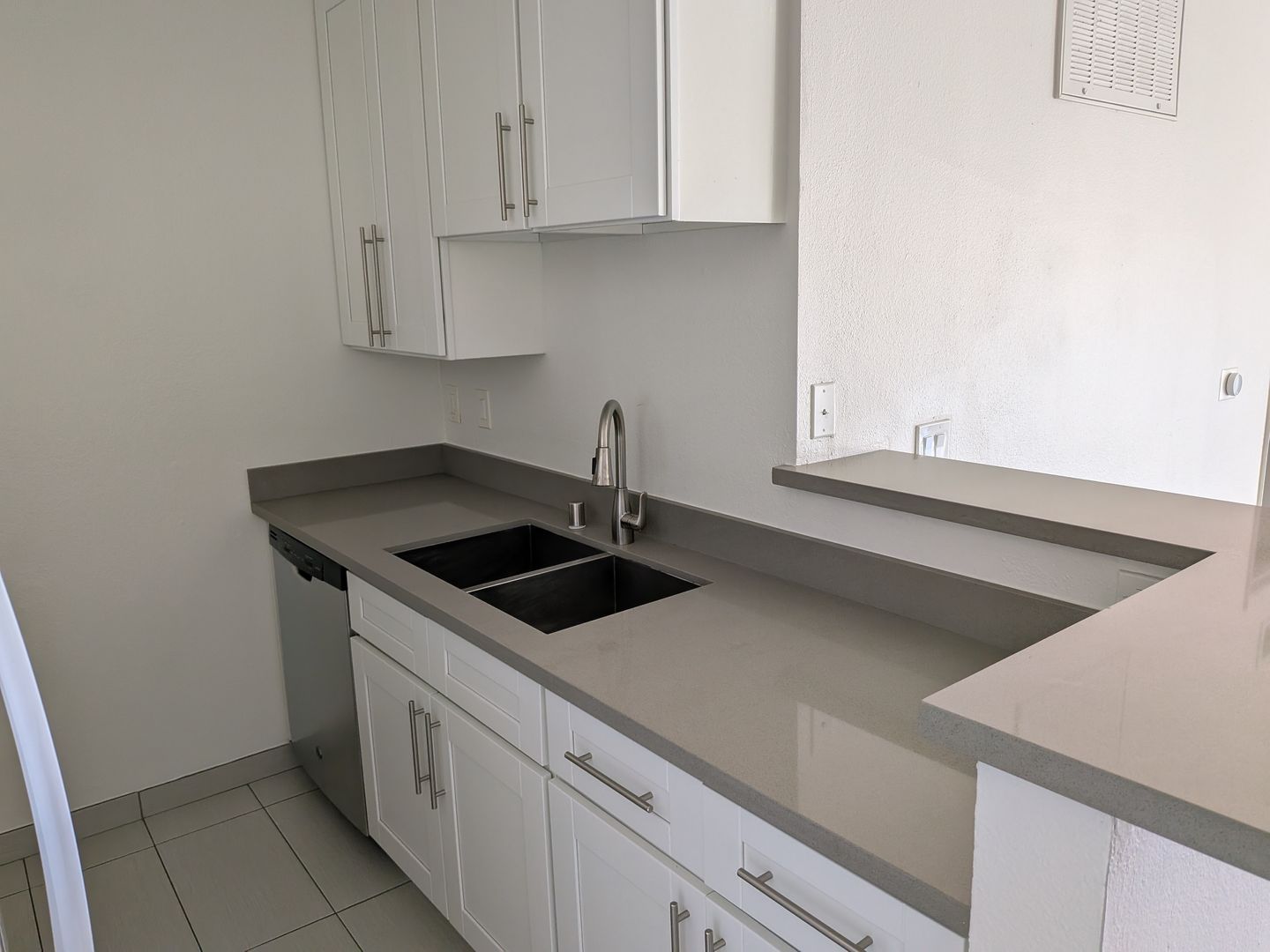 Renovated, Bright and beautiful two bedroom unit with grey slate flooring throughout.