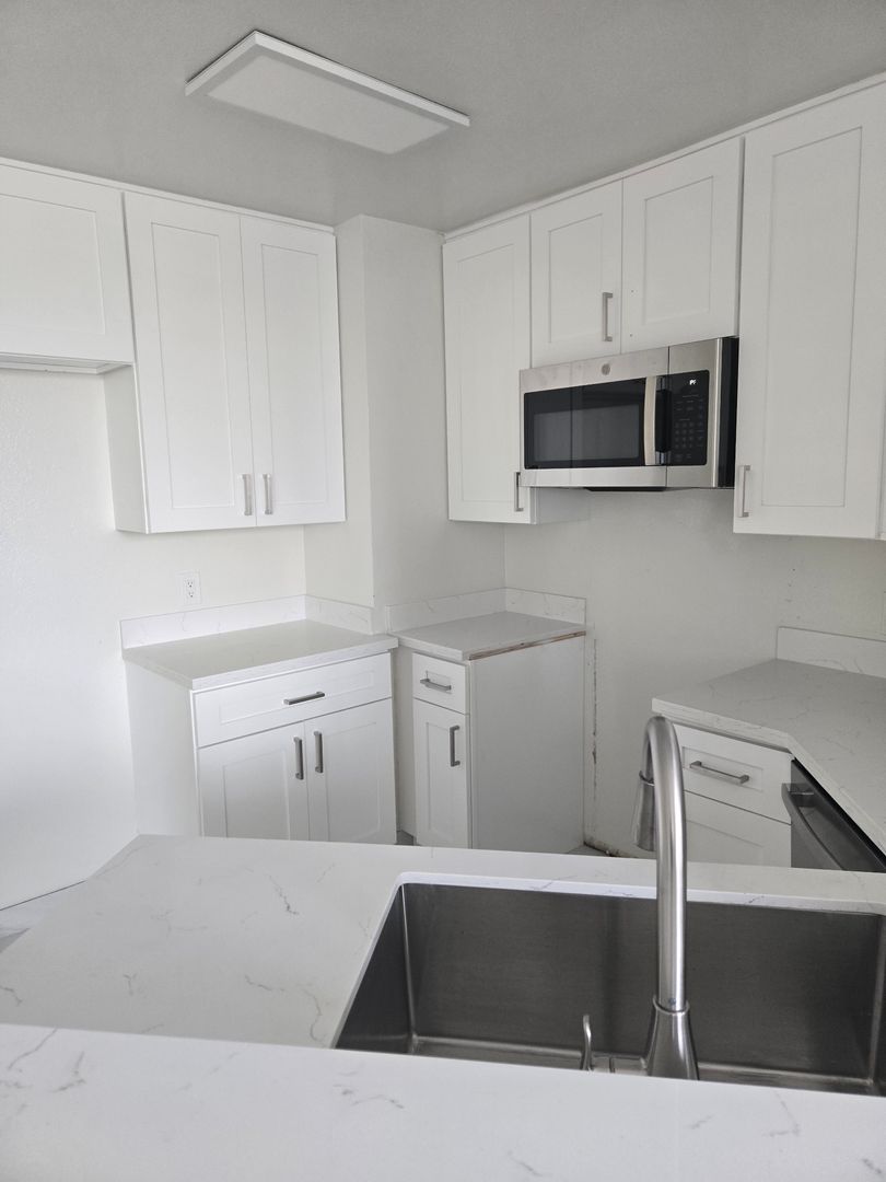 Upgraded in kitchen with lots of cabinet space and new never used electric stove, dishwasher and microwave.