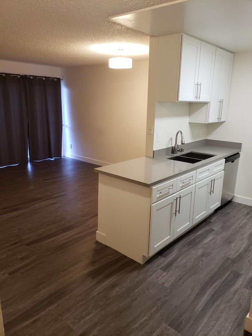 Renovated, Bright and beautiful two bedroom unit with grey slate flooring throughout.